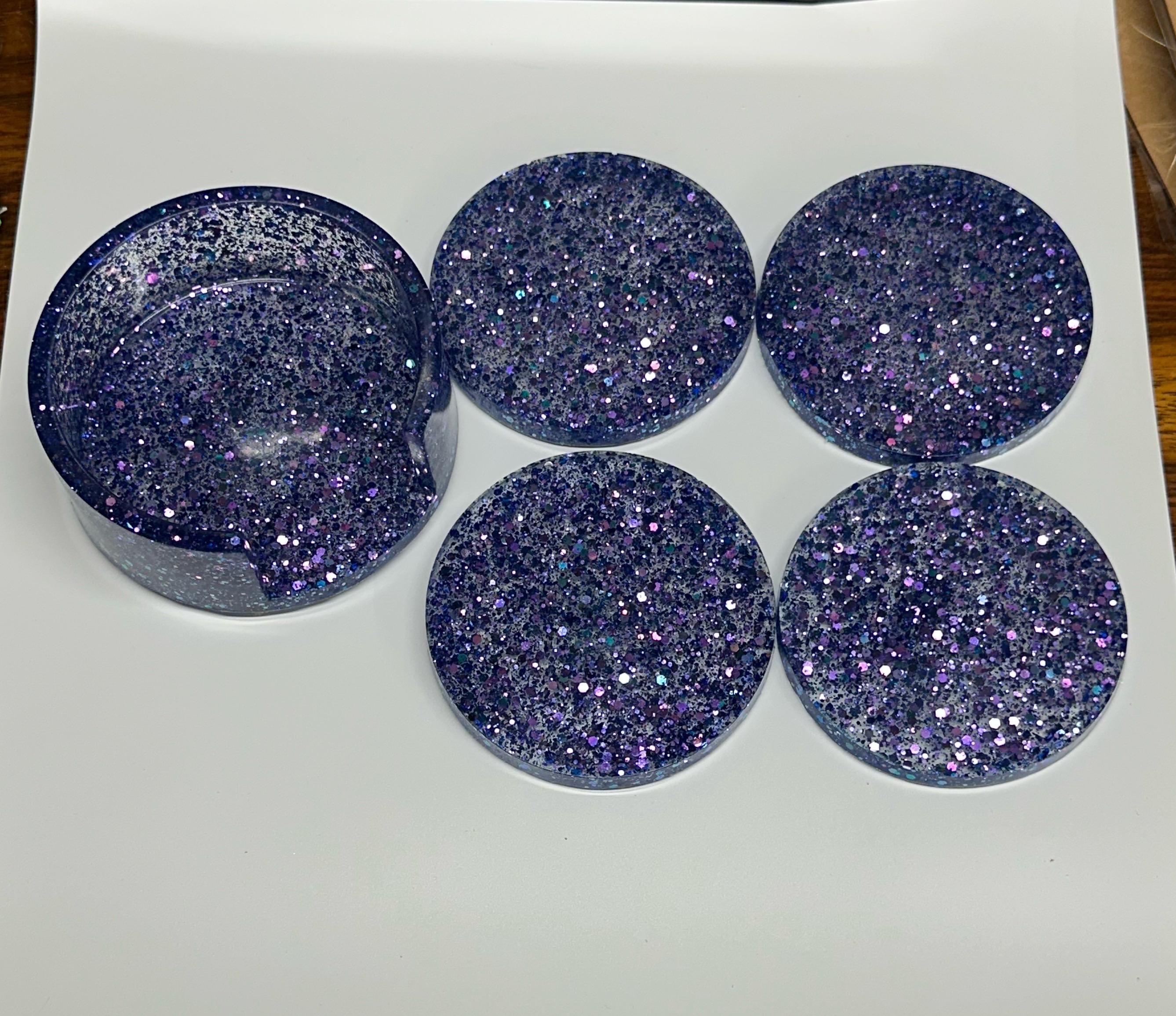 Handmade Resin 4 pc Coaster Set with Holder