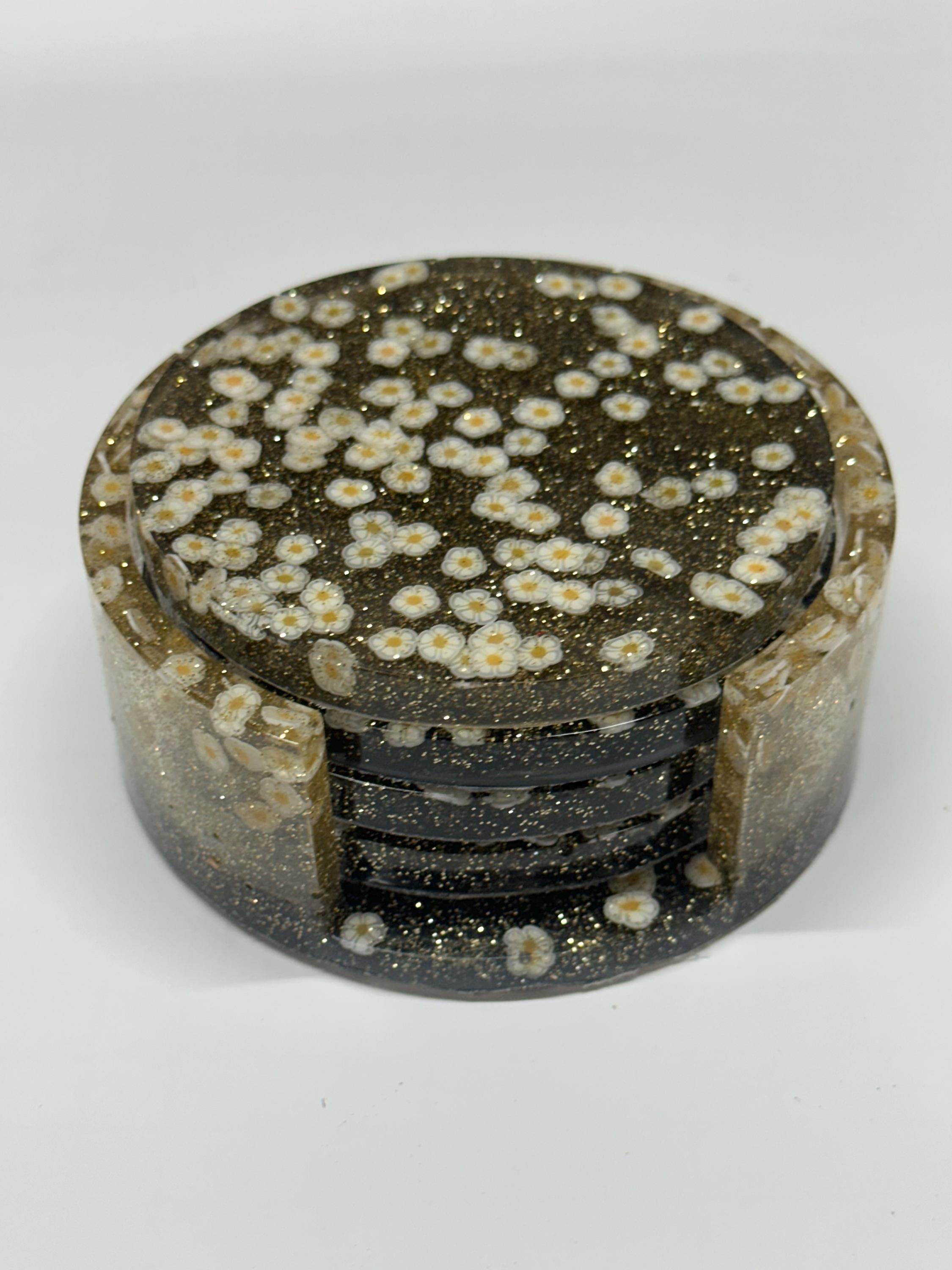 Handmade Resin 4 pc Coaster Set with Holder